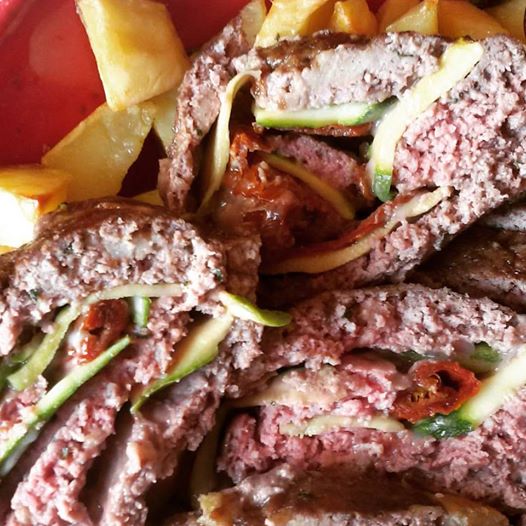 | Polpettone Ripieno con Zucchine, Pomodorini Secchi & Provola |