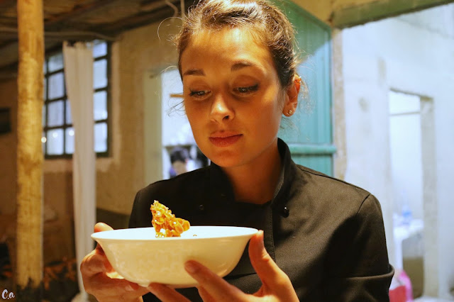 Versare il caramello sul fondo dello stampo o diviso in 6 pirottini poi con il mestolo versare un po’alla volta il preparato di panna e uova. Nel caso delle mono porzioni fate attenzione che gli amaretti siano divisi equamente. Porre lo stampo o gli stampini in una teglia con acqua calda fino a metà stampo e infornare a 160°C per circa 60 minuti per le mono porzioni o 80-90 minuti per lo stampo intero. In ogni caso fare la prova stecchino, deve uscire asciutto. Una volta che il dolce è freddo porlo in frigorifero per una notte. Il giorno dopo potete servirlo passando la lama di un coltello lungo il bordo dello stampo e rovesciandolo con decisione sul piatto di portata. Per la cena noi abbiamo accompagnato il Conquistatore con una foglia di croccante alle mandorle.