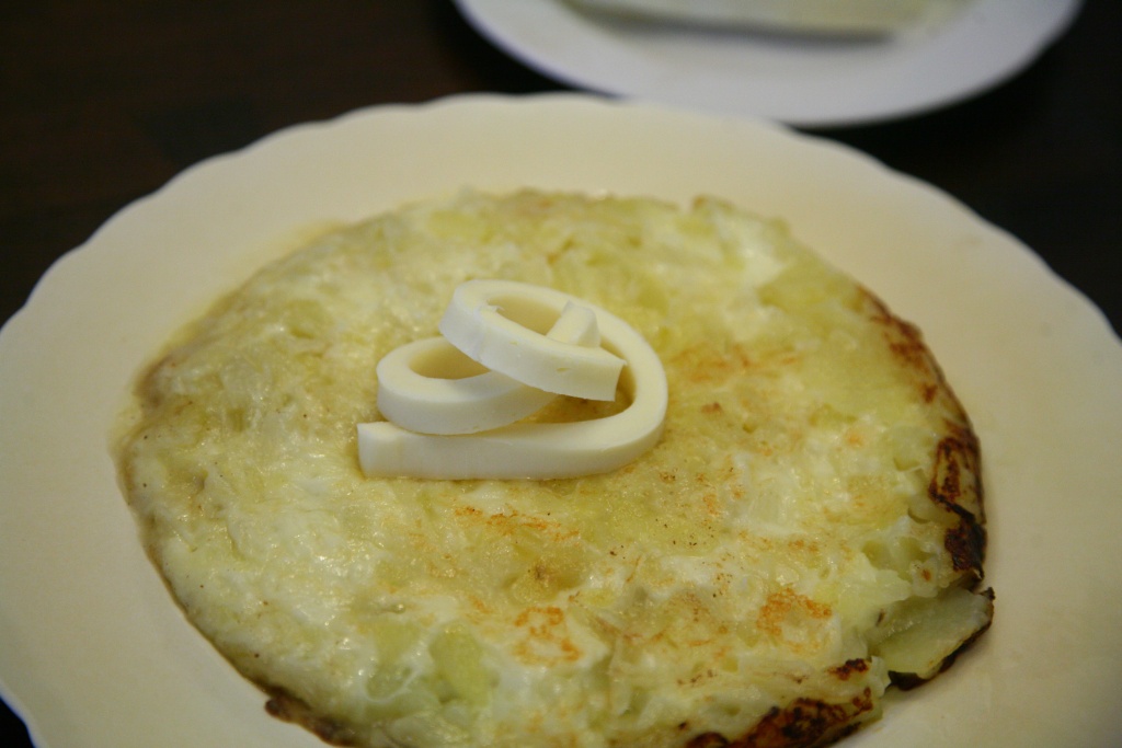 La prima è fatta con formaggio Montasio di diverse stagionature. Si utilizza una padella calda, unta con olio o lardo, si grattugia il Montasio fino a raggiungere uno strato di circa 10 centimetri e una volta schiacciato con una paletta si fa rosolare da una parte e dall’altra in modo da farlo diventare bello dorato e biscottato.