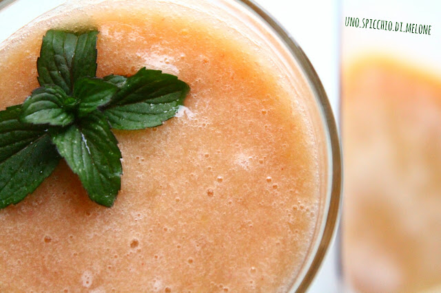 Per questo martedì…speriamo caldo e allegro…ho scelto, come ingredienti del mio centrifugato, BANANA, PESCHE NETTARINE di pasta bianca e qualche FOGLIA FRESCA di MENTA!