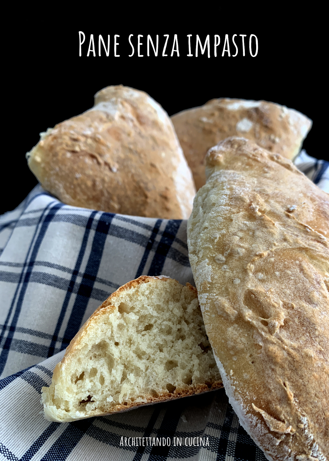 Se non avete mai fatto il pane vi consiglio di iniziare da qui. Non c’è niente da capire o movimenti particolari da fare, basta impastare, poco ed infornare. Non serve neanche l’impastatrice: va impastato pochissimo, quindi non vale la pena di sporcarla. Il risultato è di tutto rispetto ed avrete la soddisfazione di averlo fatto in casa da soli.