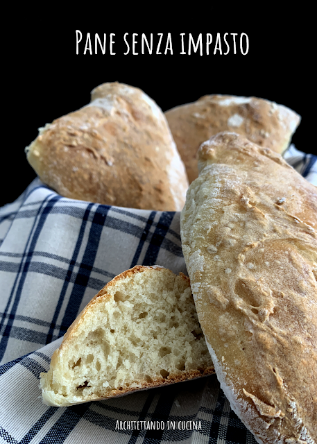 Ma proprio perché lo dimentico spesso, specialmente nel fine settimana, ho imparato a fare il pane senza impasto. Facile, veloce e di sicura riuscita. Servono due ore di tempo, da quando iniziate a quando lo sfornate.