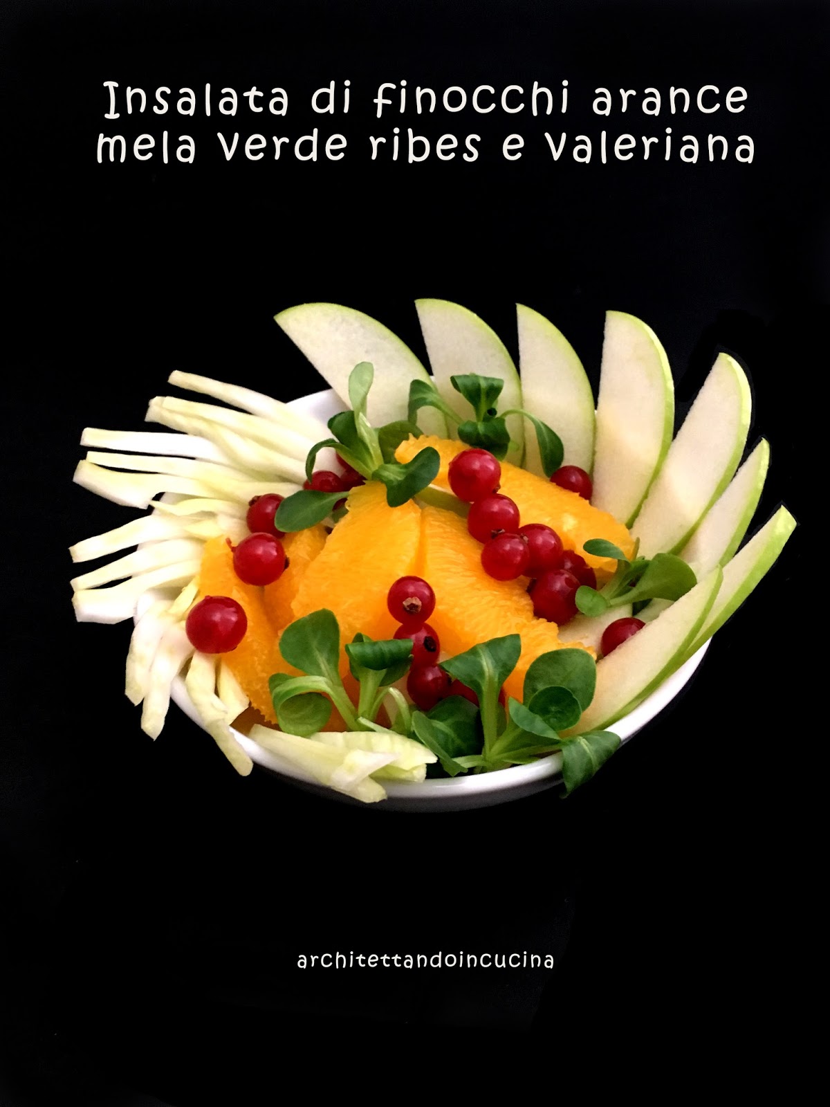 Insalata di finocchi, arance, mela verde, valeriana e ribes per 4 persone