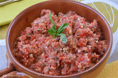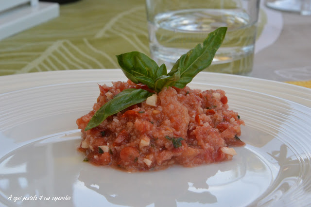 Per rifare questo piatto ho letto molte fonti, non si trovano molti articoli in quanto è un piatto un pò dimenticato, piatto povero della cucina Trapanese composto principalmente da pane raffermo, pomodori, basilico, aglio e mandorle.
