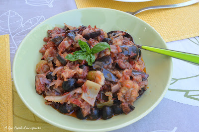 Questa volta il tema è la cucina del sud, io mi occupo degli antipasti, ho cucinato per la prima volta la caponata, uno dei miei piatti preferiti e poi ho preparato un piatto assaggiato durante un viaggio in Sicilia la scorsa estate, a Trapani: Il o La Salamureci.