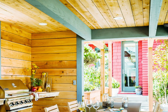 This outdoor living room and dining room adds 320 square feet to a home that is only 750 square feet to start with. Visitors walk through this open plan outdoor space on their way to the front door making it seem as though this small house has a large foyer. If you are now thinking about this room it might be better for you to look this further so that you will find more creative ideas how to make a perfect outdoor dining area that your family and guests gonna love it.