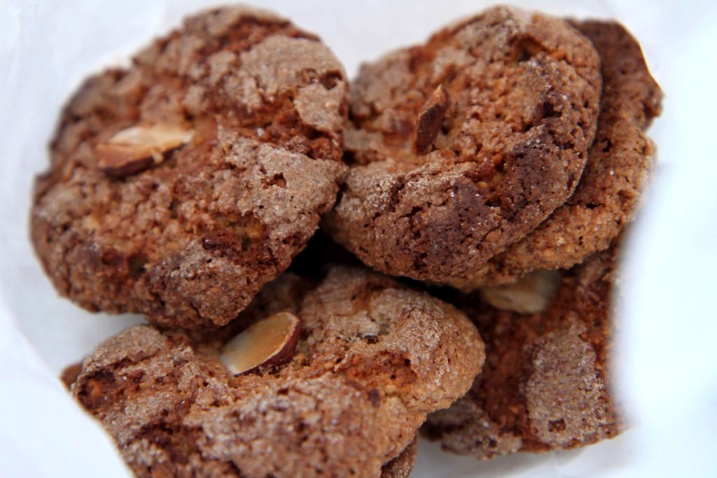 I dolcetti vengono preparati secondo le antiche ricette conventuali e costano 20 € al Kg. Sono di due tipi: uno è un biscotto croccante alla frutta secca e l’altro è il muccunetto (bocconcino), pasticcino dai sentori floreali, in pasta di mandorle ripieno di zuccata (zucca candita) aromatizzata con l’acqua di rose. Ne acquistiamo mezzo chilo per tipo. Sono buonissimi entrambi e saranno il nostro spezzafame per i prossimi giorni.