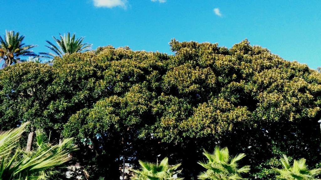 I giardini che la contornano sono spettacolari, impreziositi da palme ed enormi ficus secolari che, con le loro immense chiome, donano un piacevole refrigerio durante la calura estiva. Sono alberi talmente grandi che mi è impossibile inquadrarli per intero.