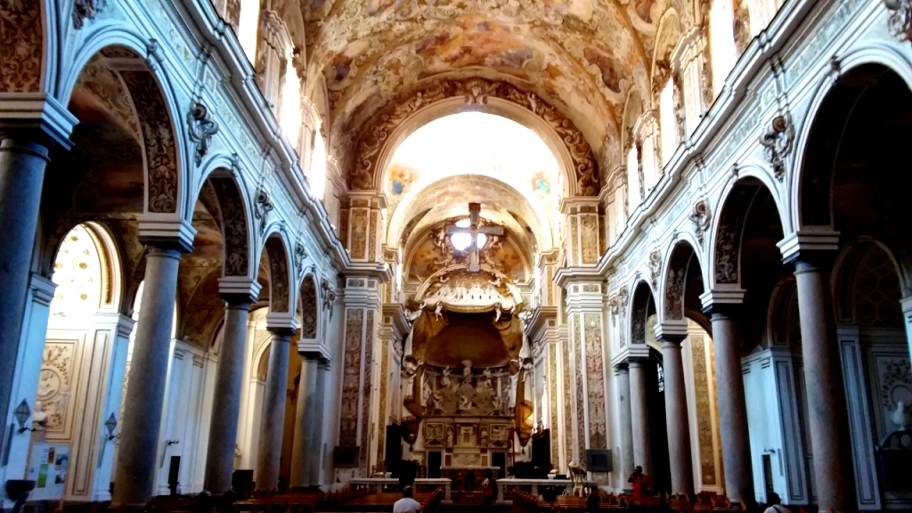 La prossima tappa è Piazza del Plebiscito su cui sorge la Chiesa di Sant’Ignazio, fondata nel 1701, la cui particolarità è quella di non avere il tetto in seguito ad un crollo negli anni ’30. I due campanili gemelli, invece, sono stati abbattuti successivamente per motivi di sicurezza. Altra peculiarità è l’interno a pianta ellittica corredato da sei cappelle che ne scandiscono il perimetro. I pregevoli affreschi recuperati, raffiguranti la vita del Santo, sono ora conservati presso il museo diocesano. E’ un vero peccato averla parzialmente persa, in quanto ciò che resta ne fa intuire l’originaria bellezza, anche se, la mancanza del soffitto le fa “entrare il cielo dentro”, restituendole, in altro modo, parte del fascino e della suggestione persi col cedimento della volta.
