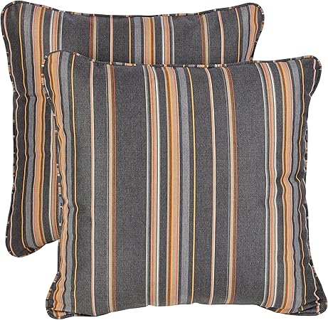 Mozaic Azps2582 Indoor Outdoor Sunbrella Square Pillow With Corded Edges Set Of 2 18 Inches Grey Orange Stripes