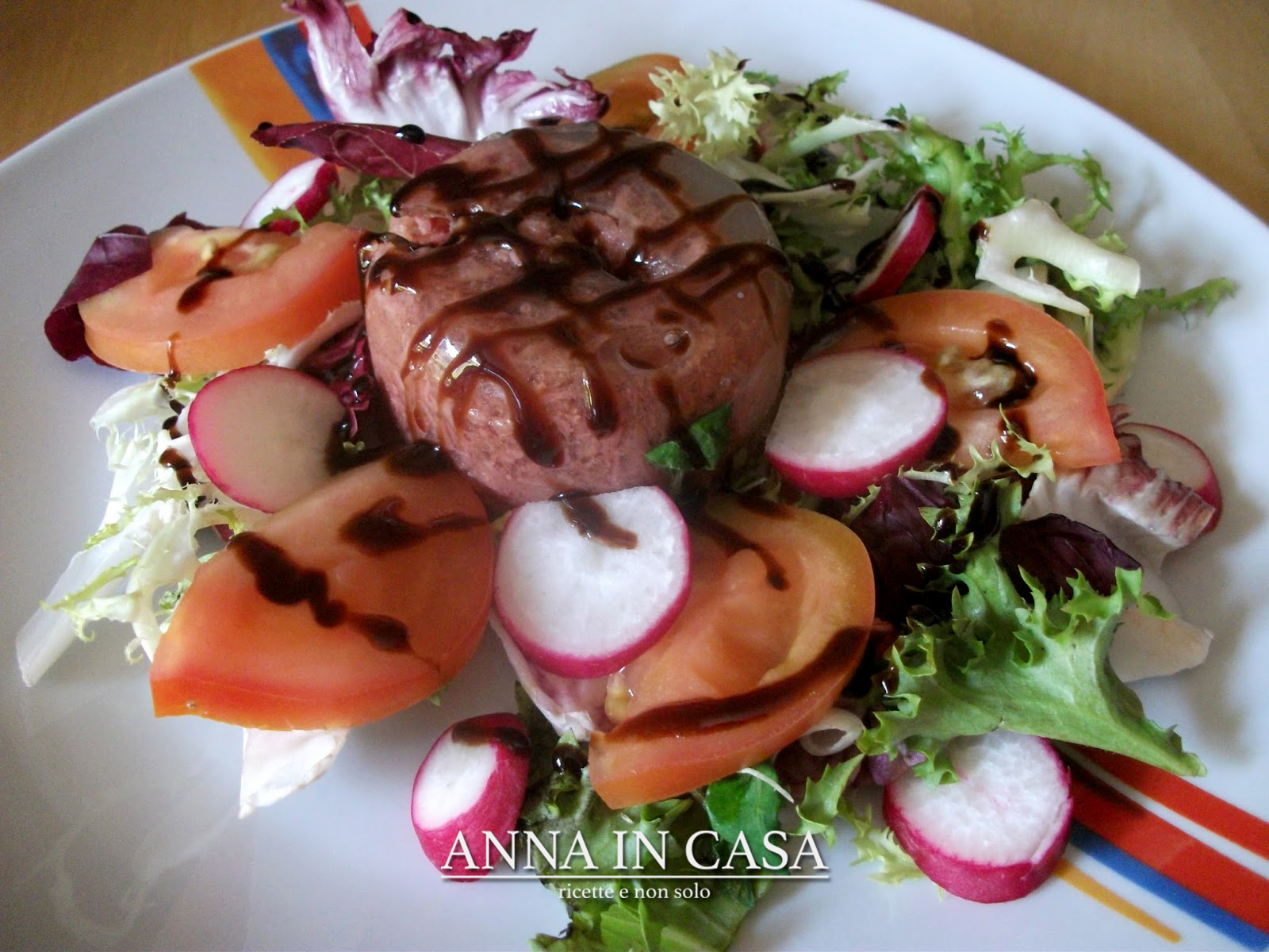 Servire le monoporzioni su un letto di insalata, fettine di pomodoro, ravanelli e decorata con aceto balsamico.