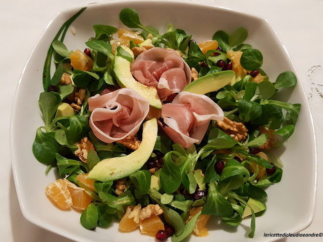 Insalata con valeriana, avocado, melograno, mandarini e noci