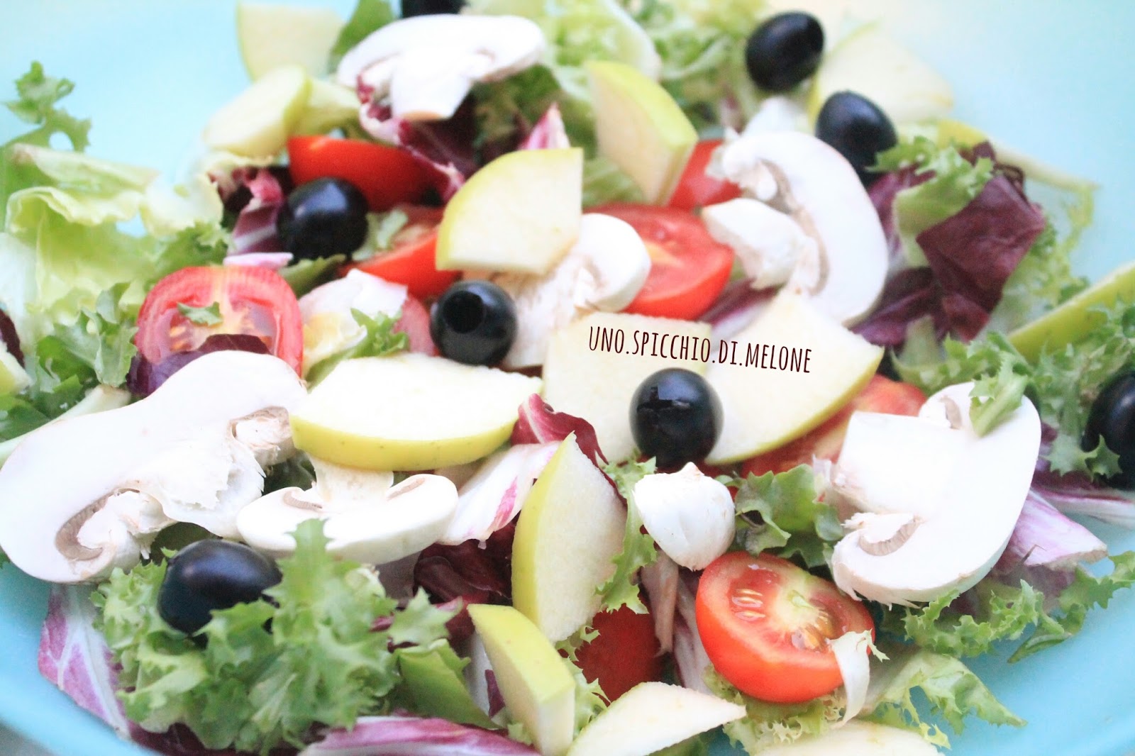 Io ho pensato di farla con una nota un po’ autunnale…ovvero con l’amica mela e i funghi champignon, delicati e gustosi ed il radicchio, intenso e salutare come pochi!