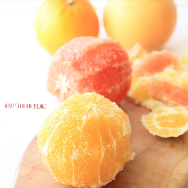 Moooolto facile! Basterà sbucciare a vivo le arance ed i pompelmi, tagliarli a fette e posizionarli (se volete) in modo cromatico su un piatto.
