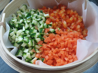 e posizionatele nella vaporiera precedentemente rivestita con carta forno e lasciate cuocere per 15 minuti.