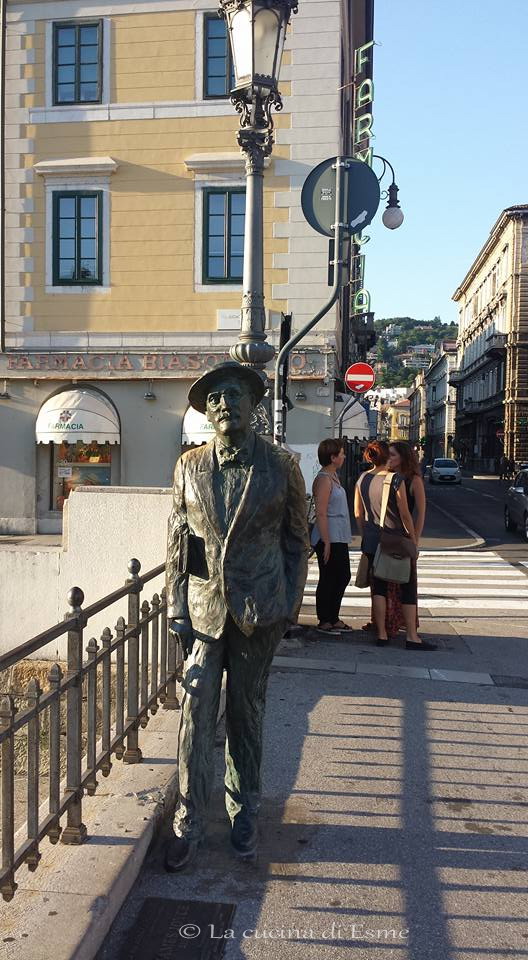 Prima di rientrare a Roma, alla fine del nostro viaggio in auto, di cui vi ho parlato nello scorso post, abbiamo fatto una sosta a Trieste, città che non conoscevamo per nulla. Trieste è una città particolare che ha affascinato ed ispirato scrittori, letterati e intellettuali di tutta Europa. Molti l’hanno scelta non solo come protagonista delle loro opere, ma come luogo in cui vivere. Noi avendo poco tempo a disposizione abbiamo concentrato la nostra visita nel centro della città dove, ad esempio, parlando di grandi uomini, vi sono collocate le tre statue dedicate a Italo Svevo, Umberto Saba e James Joyce. I primi due erano triestini di nascita, Joyce, invece, di origine irlandese, amante della letteratura italiana, si trasferì a Trieste per lavoro. La statua di Svevo si trova in Piazza Hortis, quella di Saba in via San Nicolò e quella di Joyce sul ponte del Canal Grande. Luogo magico a parer mio soprattutto al tramonto. Visitare Trieste significa intraprendere un viaggio culturale che rievoca abitudini e stili di vita passati, ma incastonati in paesaggi affascinanti e ancor oggi presenti e dominanti, primo fra tutti il mare. Purtroppo per motivi organizzativi abbiamo potuto dedicare a questa splendida città veramente troppo poco tempo, ma abbiamo deciso che torneremo per respirare di nuovo il suo mare e scoprirla con la calma che merita. Per il supporto organizzativo a Trieste ringrazio di tutto la dolcissima Chiara, grazie ai suoi suggerimenti abbiamo prenotato un hotel a due passi (veramente due) dalla magnifica piazza Unità d’Talia e sempre grazie a lei e alle sue recensioni abbiamo anche cenato divinamente in un locale carinissimo “Antico Panada” con una location bellissima sul canale, propio vicino ad una delle statue che tanto mi sono piaciute. Abbiamo mangiato del pesce freschissimo e delizioso, ma soprattutto un piatto di pasta fantastico! Dovete sapere che una delle cose che ci manca di più quando andiamo all’estero è la pasta, lo so è pateticamente italiano ma è così, è ovvio che ci piace tantissimo assaggiare cibi locali, ma 15 giorni senza pasta sono tanti, troppi secondo mia figlia e mio marito e così al rientro a casa, cosa mi hanno subito chiesto di preparare? Pasta of course! E visto che siamo in estate, e fa anche molto caldo, oggi vi propongo un’insalata di pasta, perfetta anche per i fortunati che stanno al mare da trovare al rientro dalla spiaggia!