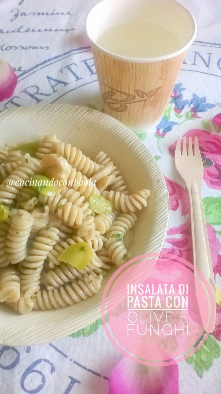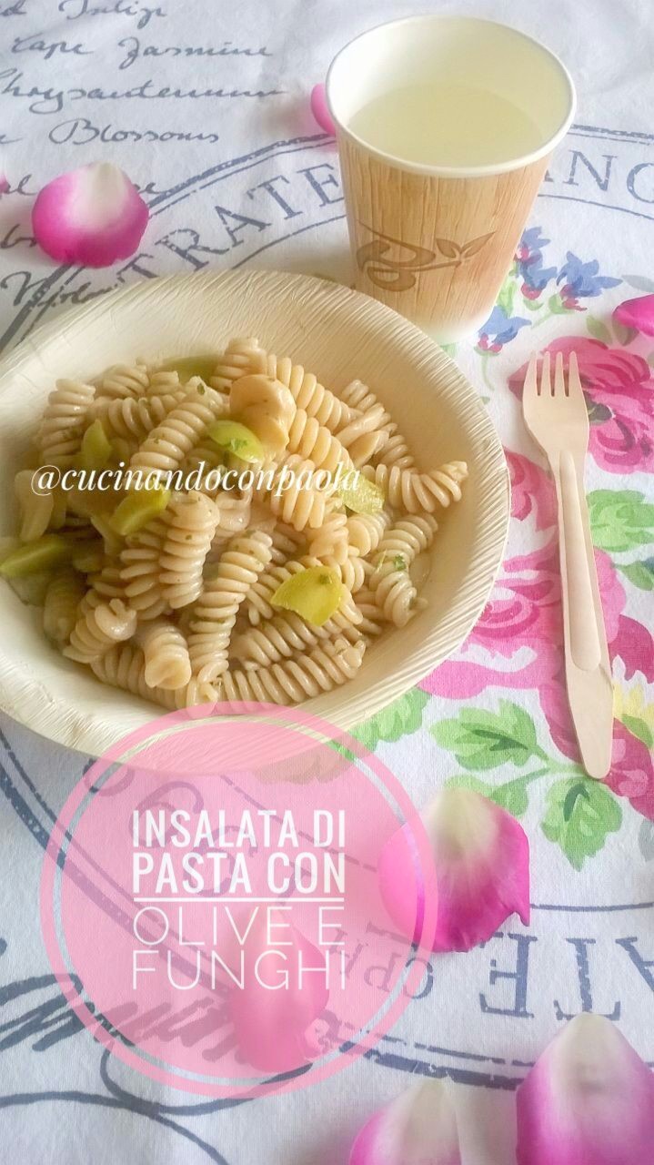Mettete a bollire l’acqua per la pasta, salatela a pieno bollore, tuffatevi la pasta e cuoceteli per il tempo prescritto sulla confezione. Tagliate le olive a pezzetti e i funghi lasciati interi. Tritate l’aglio e il prezzemolo. In una ciotola capiente riunite tutti gli ingredienti, salate e pepate, aggiungete alcuni giri d’olio, lasciate riposare e fate insaporire il tutto. Scolate la pasta al dente, passatelo sotto l’acqua fredda e conditeli con la salsa preparata, mescolate con cura. Servite subito.