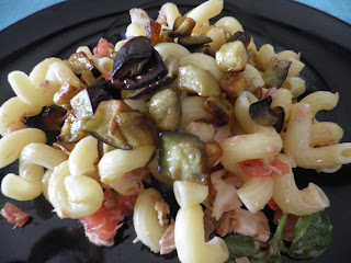 Ingredienti: pasta del formato che preferite (io ho scelto le eliche), melanzane, mozzarella di bufala, pomodori freschi, tonno in scatola al naturale, basilico, olio extravergine d’oliva.