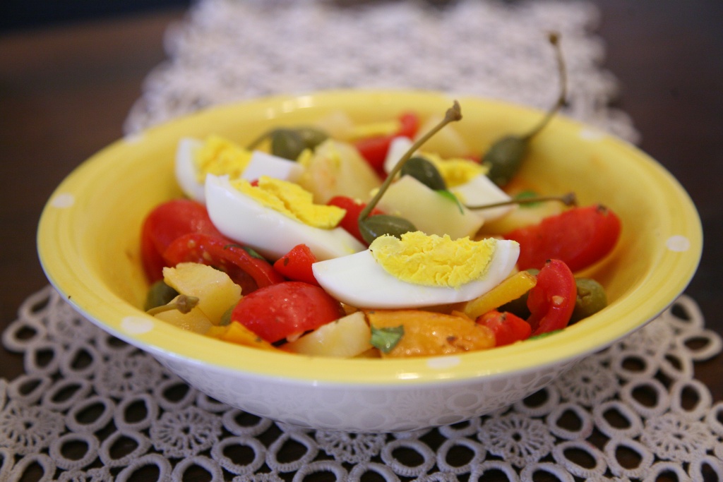 Oggi ho preparato una insalata di patate un po’ corposa che è diventata un piatto unico freddo.
