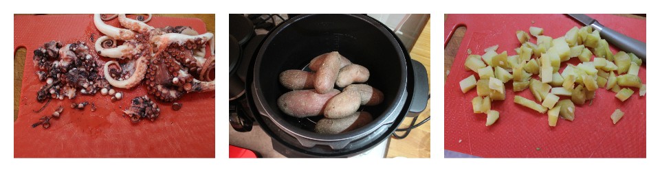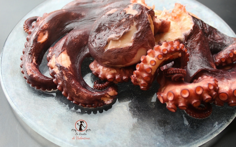 - un polpo da circa 800/1000g già pulito dal pescivendolo e cotto come da ricetta QUI