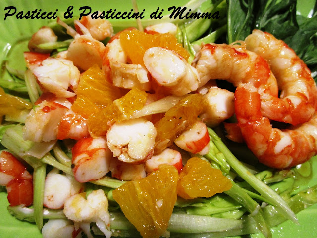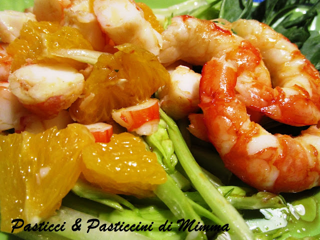 Ho preparato questa deliziosissima insalata con gamberi mazzancolle lessati, puntarelle e arance pelate a vivo. E’ un piatto unico , che si può preparare in anticipo , leggero ma appagante!!