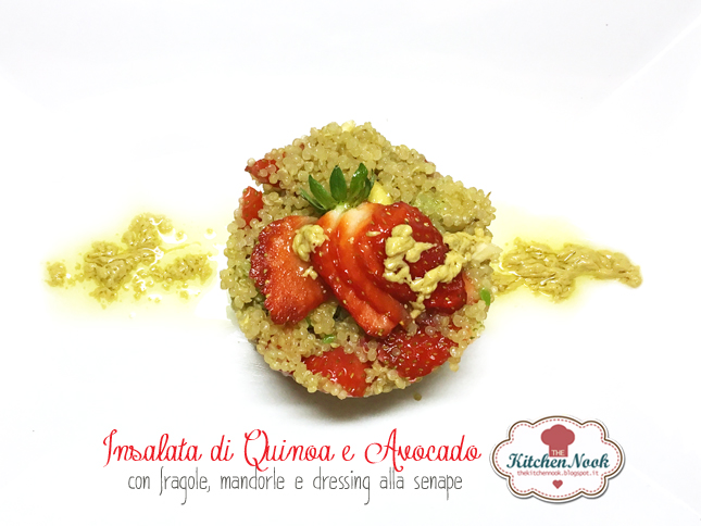 Fa un gran caldo, e io non vedevo l’ora… perchè così a prepararsi colorate e fresche insalate c’è più gusto, con l’aria condizionata accesa ovviamente! La proposta di oggi vede come protagonisti la quinoa e l’avocado, armonizzati con contrsti di gusto, colore e consistenza da rosse fragole, mandorle croccanti e un cremoso dressing a base di senape delicata. Una ricetta vegana, sana, ipocalorica e gustosa.