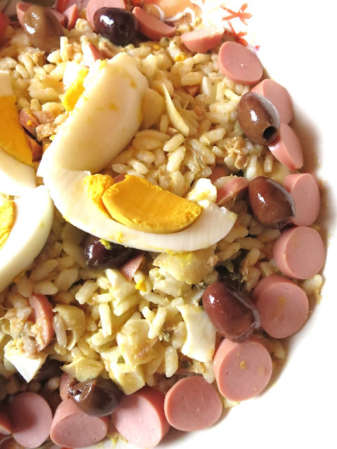 Unire quindi i capperi strizzati e tritati grossolanamente, i sott’oli a pezzetti , le olive taggiasche intere, un uovo sodo tritato, i wurstel ( lasciare da parte un paio per la decorazione del piatto) e una spolverata di origano…