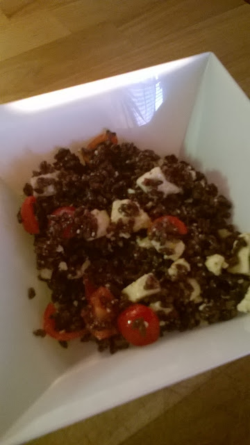 Buongiorno a tutti, anche da voi fa brutto e freschetto??? Siccome io non voglio ancora salutare l’estate, vi propongo un’insalata di riso fresca ancora estiva che ho fatto al mare e che mi e’ piaciuta molto. Scusate le foto, le ho scattate con il telefonino e non sono un granche’ ma mi spiaceva nno condividerla con voi.