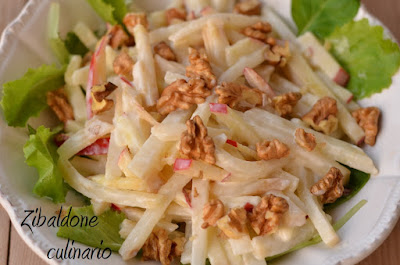 Unire sedano rapa e mela, condire con il dressing così preparato.