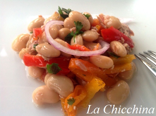 Quindi: mettere i fagioli in una terrina, aggiungere il tonno scolato dal suo olio, la cipolla tritata, i peperoni in agrodolce preferibilemte a striscioline e il prezzemolo; insaporire con origano, pepe,sale, succo di limone a piacere e olio . Ecco fatto, buonissima ed appetitosa, ciao a presto, e grazie di essere passati!!!