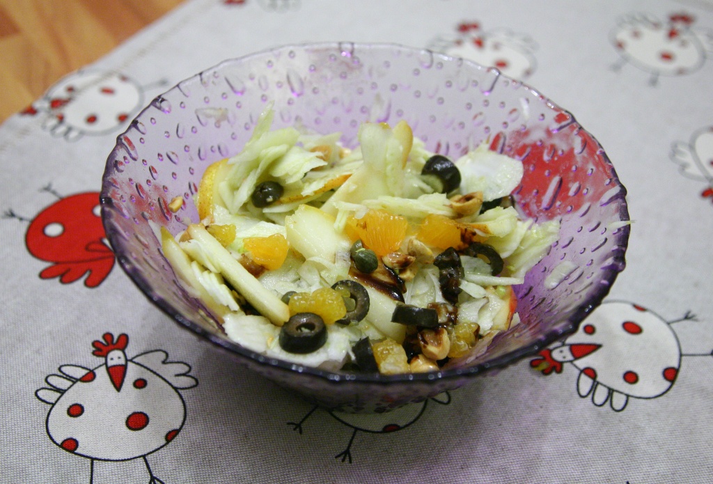 Possiamo allora provare a preparare una bella insalata colorata, gustosa, accattivante e croccante accostando al finocchio fresco delle clementine, delle pere Williams, delle olive nere e qualche nocciola.