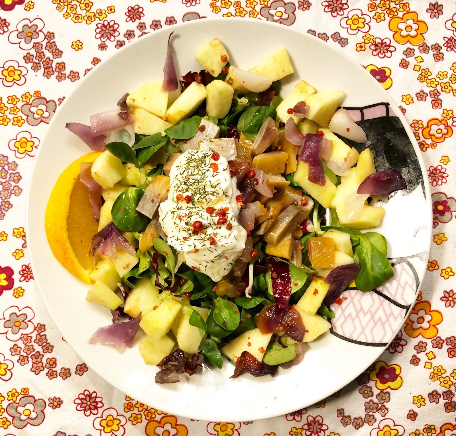Come di mia abitudine ho aggiunto qualche spezia, condito con succo di arancia e al posto della panna acida, yogurt greco, più light e facile da trovare (per me soprattutto, visto che l’avevo in frigo).
