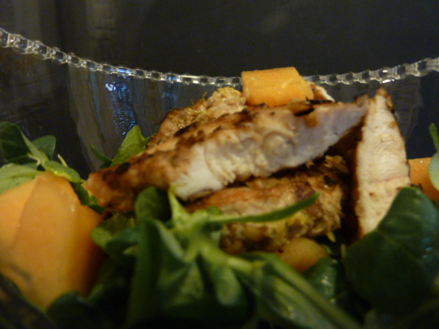 Non rimane che riunire il tutto, quando il pollo è ancora caldo, in una bella ciotola e condire con sale, il succo di 1/2 lime e due cucchiaini di olio.
