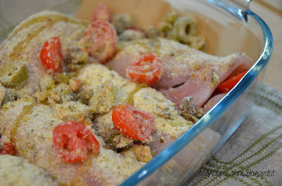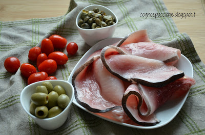 Tritate le olive con i capperi e tagliate a dadini i pomodorini.