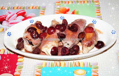 Cuocerli circa 15/20 minuti quindi passato questo tempo aggiungere nel tegame le ciliegie rimaste, spargendole qua e là anche sopra gli involtini e continuare la cottura.
