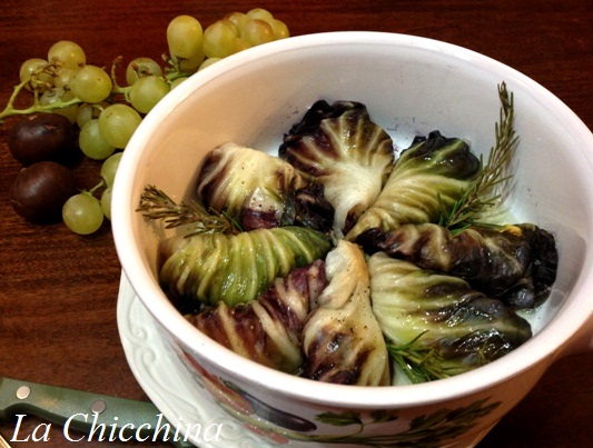 Stasera ho pensato a qualcosa di un po’ particolare: degli involtini di radicchio, castagne e toma… una delizia. Possono rappresentare un antipasto o un contorno, forse inconsueto ma assolutamente da provare.