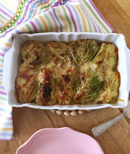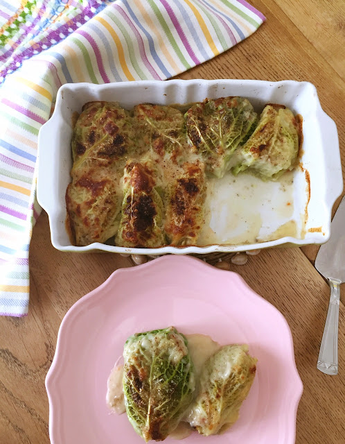 Comunque questa verza l’ho sfruttata davvero al meglio, con un ripieno strepitoso ho utilizzato le foglie per farci degli involtini e ho ricoperto il tutto con una besciamella leggera ma saporitissima, preparata con brodo vegetale, senza burro e senza latte.