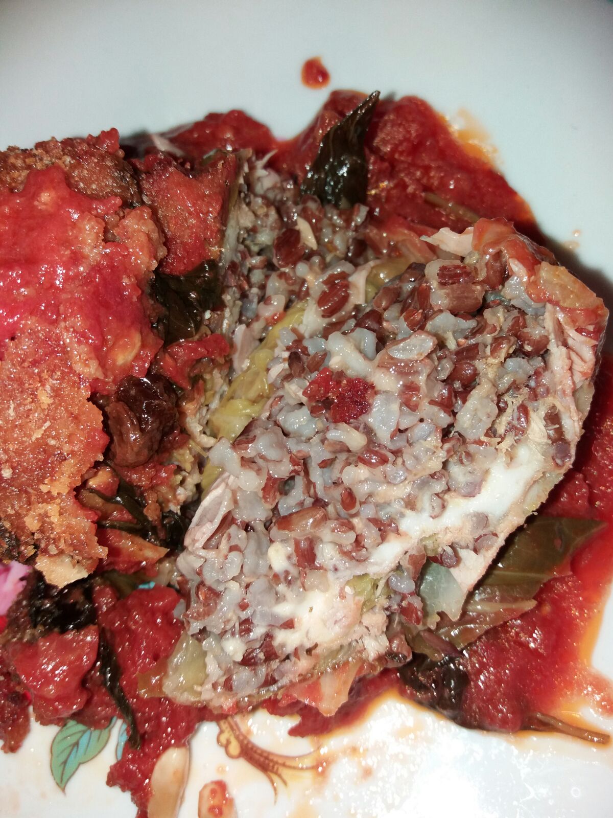 (stando attente a non rompere la foglia) e farcite con la fetta di prosciutto,riso,tonno