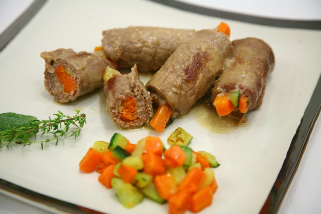 Bocconcini di carne farciti o meglio piccole fettine che racchiudono un ripieno di verdura e mortadella di Bologna.