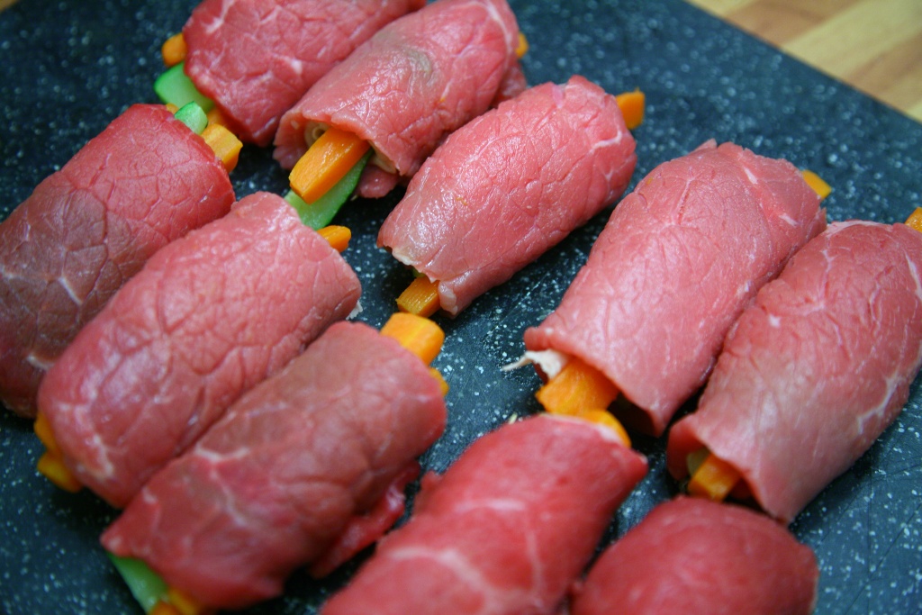 Io come carne ho usato il magatello o girello, un taglio di carne che si usa normalmente per preparare il vitello tonnato, ma va benissimo qualsiasi tipo di fettina, l’importante che sia sottile e non troppo grande.