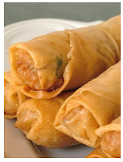 Lavorate il latte di soia, le uova e il sale e formare la pastella. Fate delle frittatine scaldando la padella e ricoprendola con un velo di olio di arachidi. Una volta pronte le frittatine tenetele da parte al caldo. Preparazione ripieno Tagliate a strisce sottili i petti di pollo, metteteli a rosolare per un minuto mescolando continuamente in una padella contenete un po’ d’olio bollente (sempre quello di arachidi). Aggiungete le cipolle tagliate a strisce sottilissime, i funghi ed i germogli di soia sgocciolati e tagliuzzati. Continuate la cottura per un minuto ancora, unendo poi la salsa Hoisin e legando il tutto con la fecola mescolata al brodo. Insaporite infine con sale, peperoncino e con il dado. 3 Fase finale Distribuite il ripieno sulle frittatine, chiudetele e spalmatene i bordi con il tuorlo d’uovo. Friggete quindi in padella o ad immersione nell’olio…