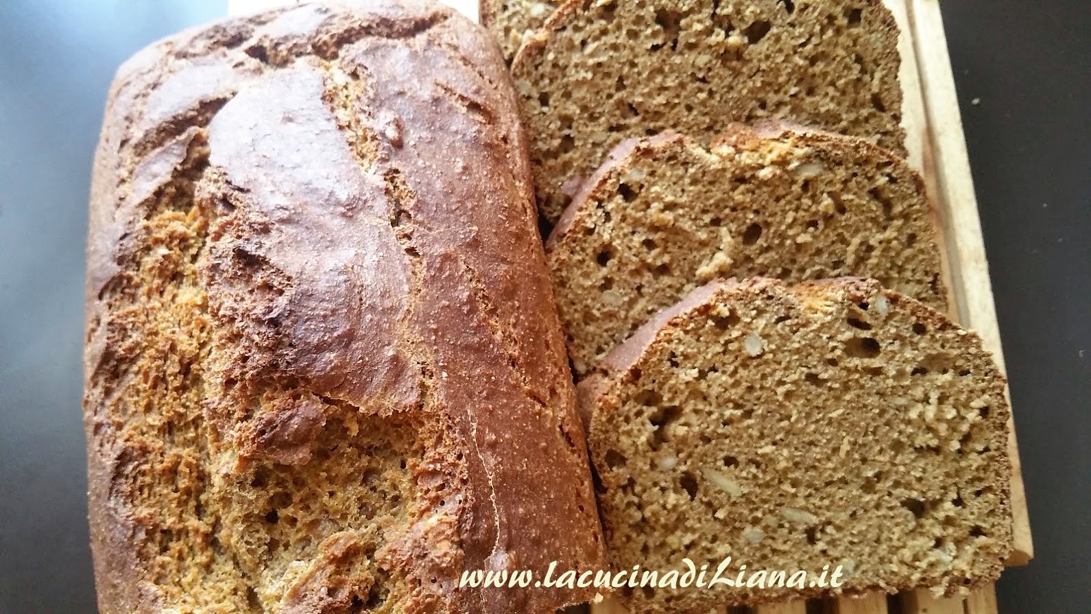 Questo è un pane molto particolare, con un gusto un pò amarognolo, e che si prepara in un attimo, infatti non prevede alcuna lievitazione, quindi 10 minuti per prepararlo più 1 ora di cottura ed il pane è pronto. Morbido, con la mollica un pò compatta, perfetto con i formaggi. La ricetta è tratta dal blog andante con gusto.