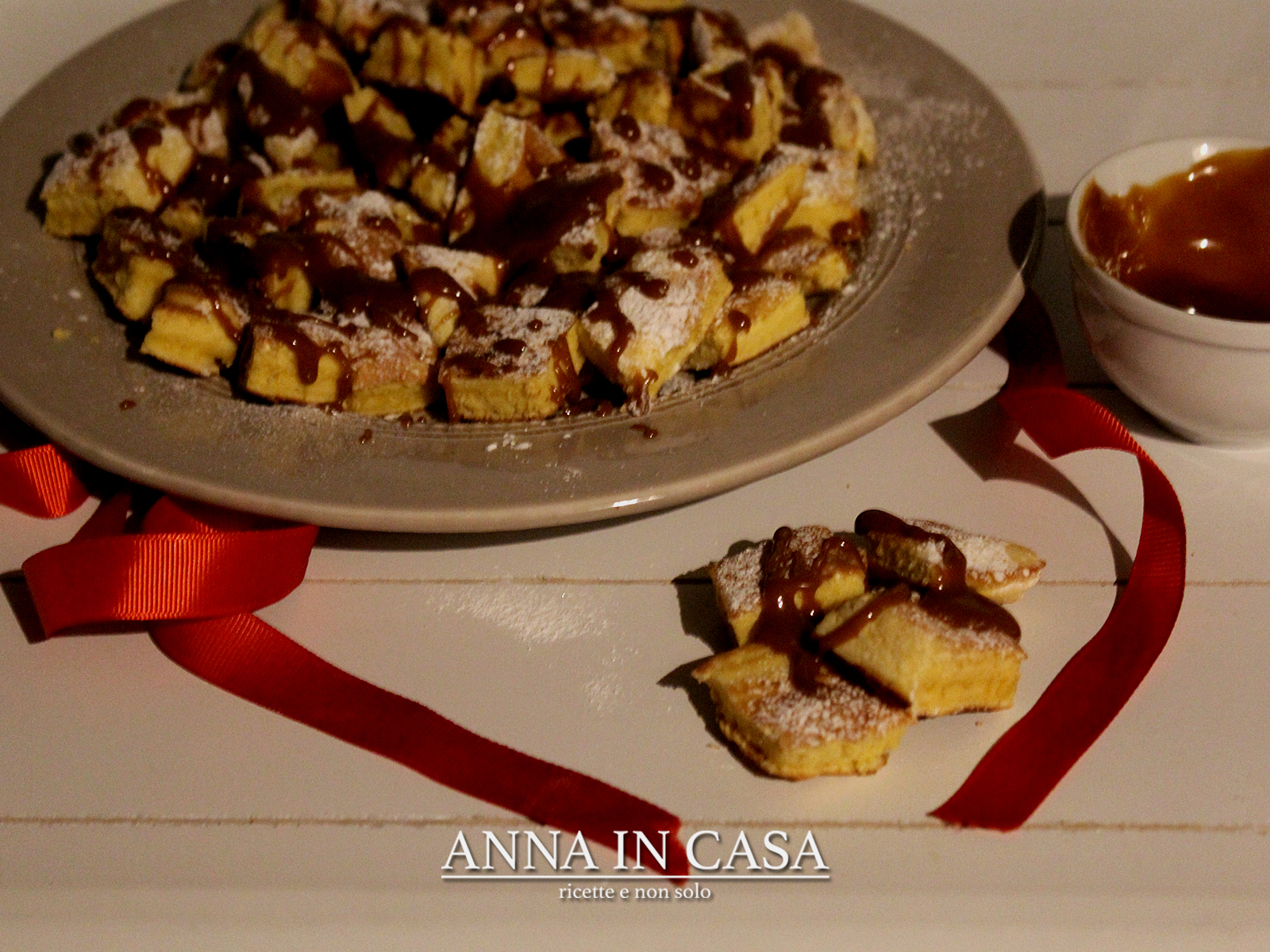 Una volta pronto tagliare la “/redirect.php?URL=frittata” a quadretti e cospargerla con zucchero a velo e crema caramello.