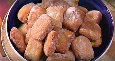 Stendere con il mattarello, piegare a libro e ricavare dei quadrati con un coppapasta; disporli su una teglia ricoperta di carta da forno, lasciar lievitare ancora per 30 minuti e poi, delicatamente, tuffarli nel tegame con abbondante olio di semi di arachide ben caldo.