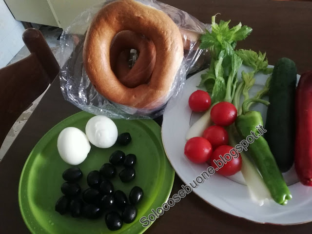 Versiamo le verdure e le olive sopra i taralli che avremo precedentemente posto su un piatto di portata. Sistemiamoci sopra le uova sode tagliate a fettine. La tradizione vuole che vengano aggiunte anche le alici sott’olio (in questo piatto mancano perchè a me non piacciono).