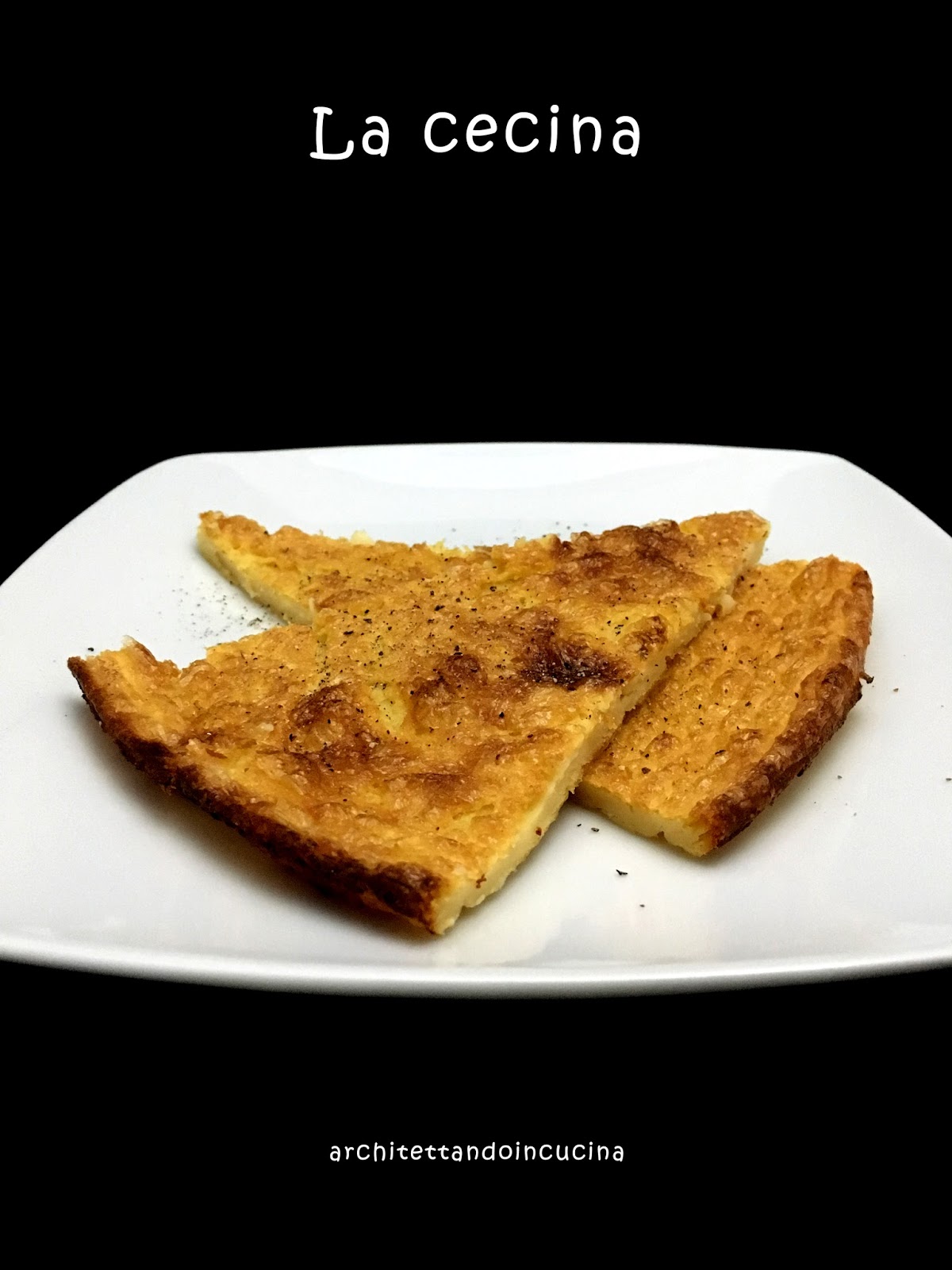 In una ciotola disporre la farina di ceci accuratamente setacciata, fare la fontana e aggiungere al centro 3 cucchiai di olio, un cucchiaino di sale e pian piano tutta l’acqua mescolando accuratamente con una frusta, fino ad ottenere un composto liscio, fluido e senza grumi. Lasciar riposare almeno un’ora. Preriscaldare il forno alla massima temperatura. L’ottimo sarebbe il forno da pizza, a casa scaldare il forno al massimo. Oliare accuratamente la teglia da pizza (anche sui bordi) con l’olio rimasto e versarci l’impasto della cecina. Cuocere in forno per circa 15 minuti, e poi passare alla funzione grill per 8/10 minuti, finchè non si formerà una crosticina in superficie. Servire appena sfornata, con pepe macinato al momento. E’ buona anche fredda, ma può essere riscaldata, se avanza.