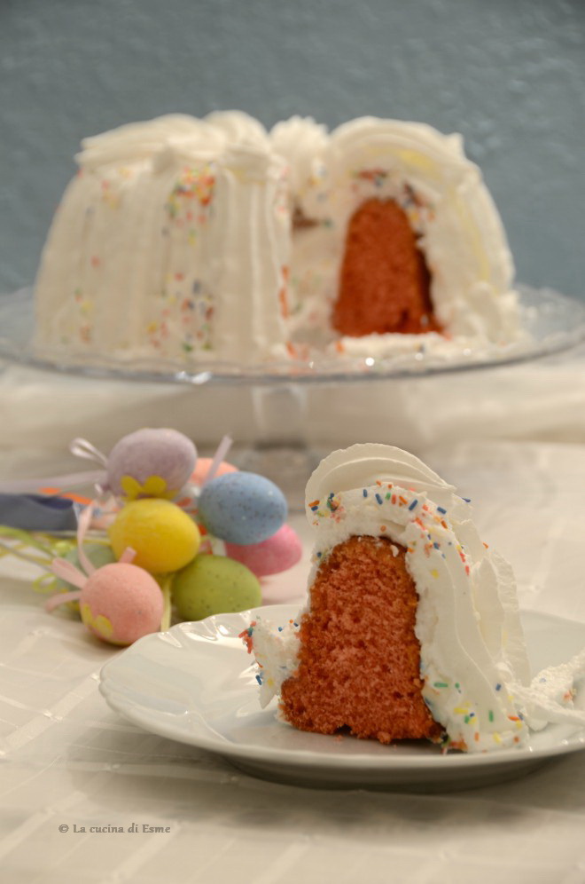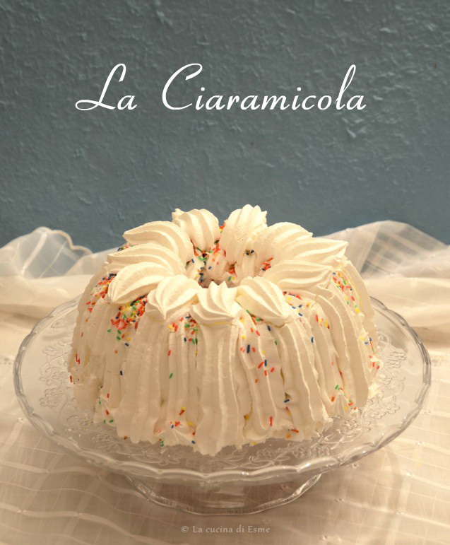 Sarà una Pasqua strana, con i riti della settimana Santa seguiti solo attraverso i mass media, senza pranzi con amici e parenti … senza scampagnate. Ma lo spirito di questa festa dobbiamo tenercelo stretto, farlo vivere tra le mura domestiche ora più che mai, magari ripescando in antiche tradizioni regionali vecchie ricette. Io, ad esempio, ho voluto provare la Ciaramicola umbra, un dolce che assaggiai un paio di anni fa da una mia zia di Foligno. Mi feci dare subito la ricetta, perché ne rimasi affascinata, ma fino ad ora non avevo mai avuto il tempo di provarlo. I colori del dolce, il rosso dell’interno e il bianco dell’esterno, fanno riferimento allo stemma di Perugia, mentre sembra che il suo nome derivi da “ciarapica”, un termine dialettale umbro che indica la cinciallegra, un uccellino dai tanti colori che annuncia con il suo canto l’arrivo della primavera. In passato, questo dolce, era tradizionalmente preparato dalle fidanzate per i loro promessi sposi in occasione delle festività pasquali. La bellissima Ciaramicola, altro non è che una soffice ciambella, con un impasto aromatizzato all’alchermes, ricoperta di una bianchissima meringa cosparsa di confettini colorati, ma è all’assaggio che questo dolce vi stupirà … il contrasto tra la meringa croccante e la sofficità profumata dell’interno … un’esplosione di sapori, consistenze e colori!