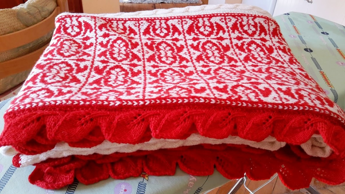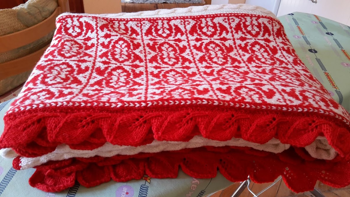 Io le ho detto che sarebbe stata bianca e rossa ( avevo una quantità incredibile di lana rossa acquistata quando u negozio del mio paese ha chiuso i battenti)..
