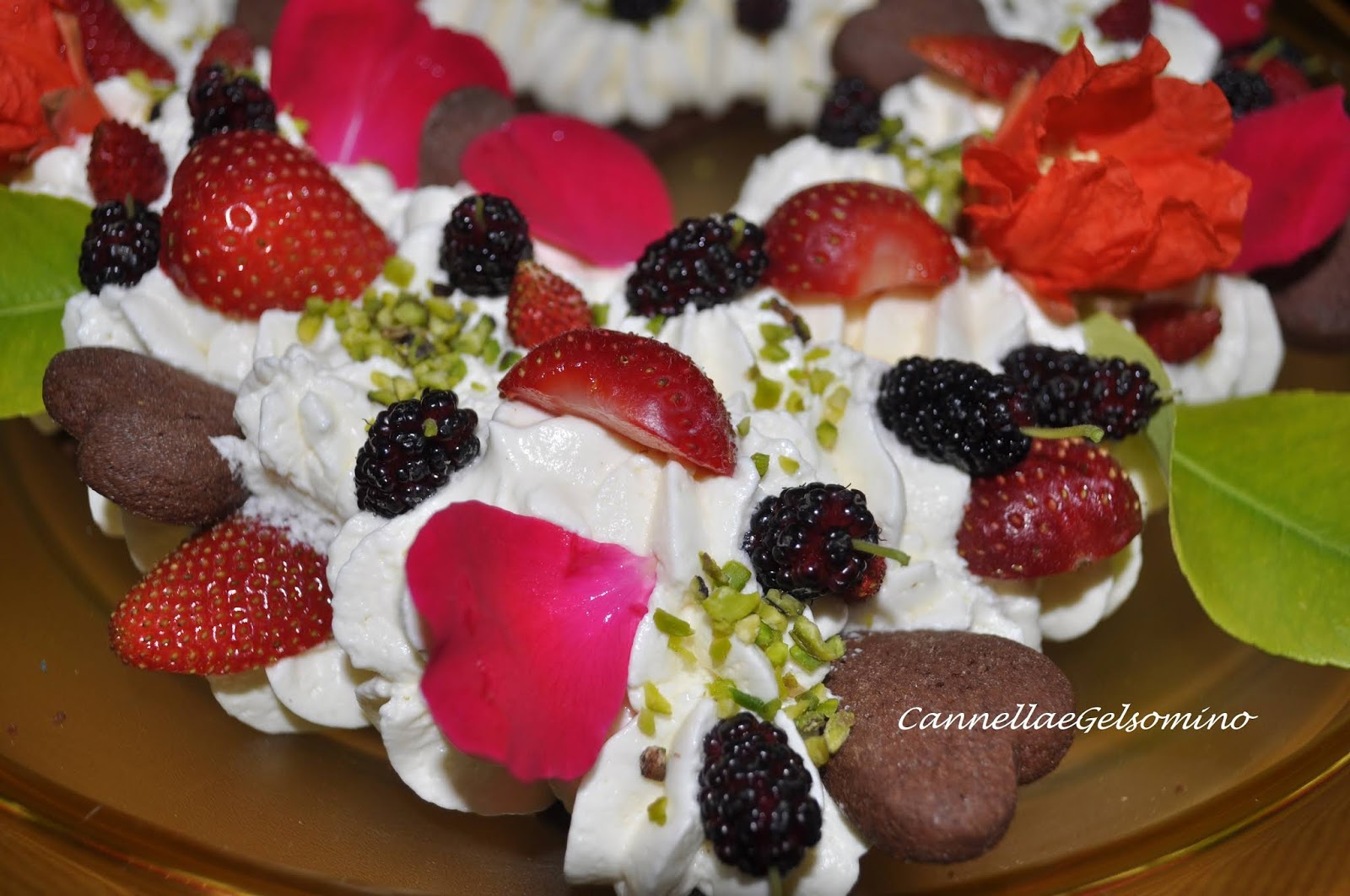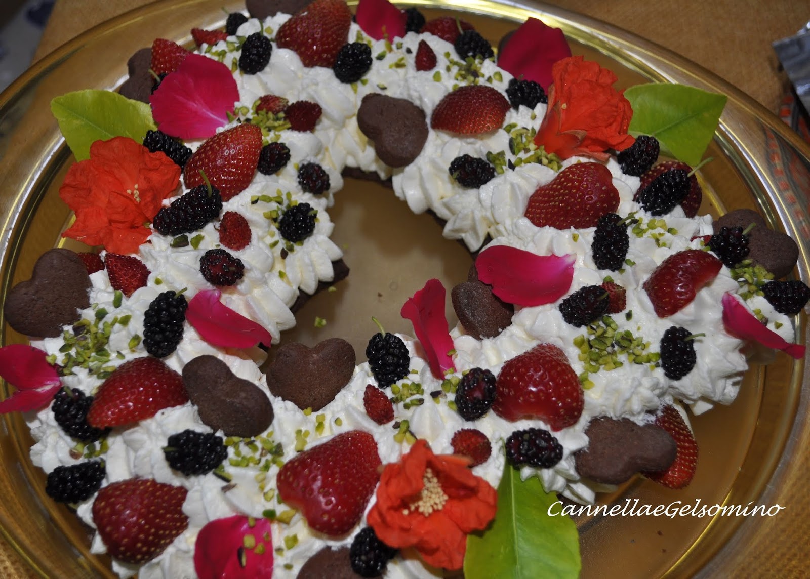 Io ho utilizzato: fragole, fragoline, gelsi, petali di rose, fiori di melograno, zagare di limone, margheritine, praline di cioccolato, granella di pistacchio, foglie di limone.