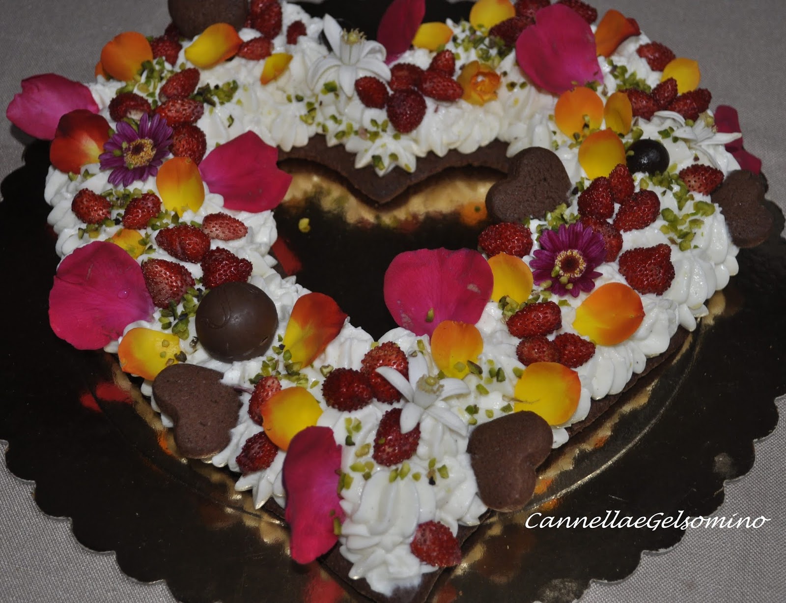 L’ho realizzata con le mie varianti personali come al solito: solo un piano di frolla, crema alla ricotta e per decorazione ciò che ho trovato nell’orto. Le ho dato questo nome non tanto per la forma di cuore, ma perchè l’ho preparata per due persone speciali.
